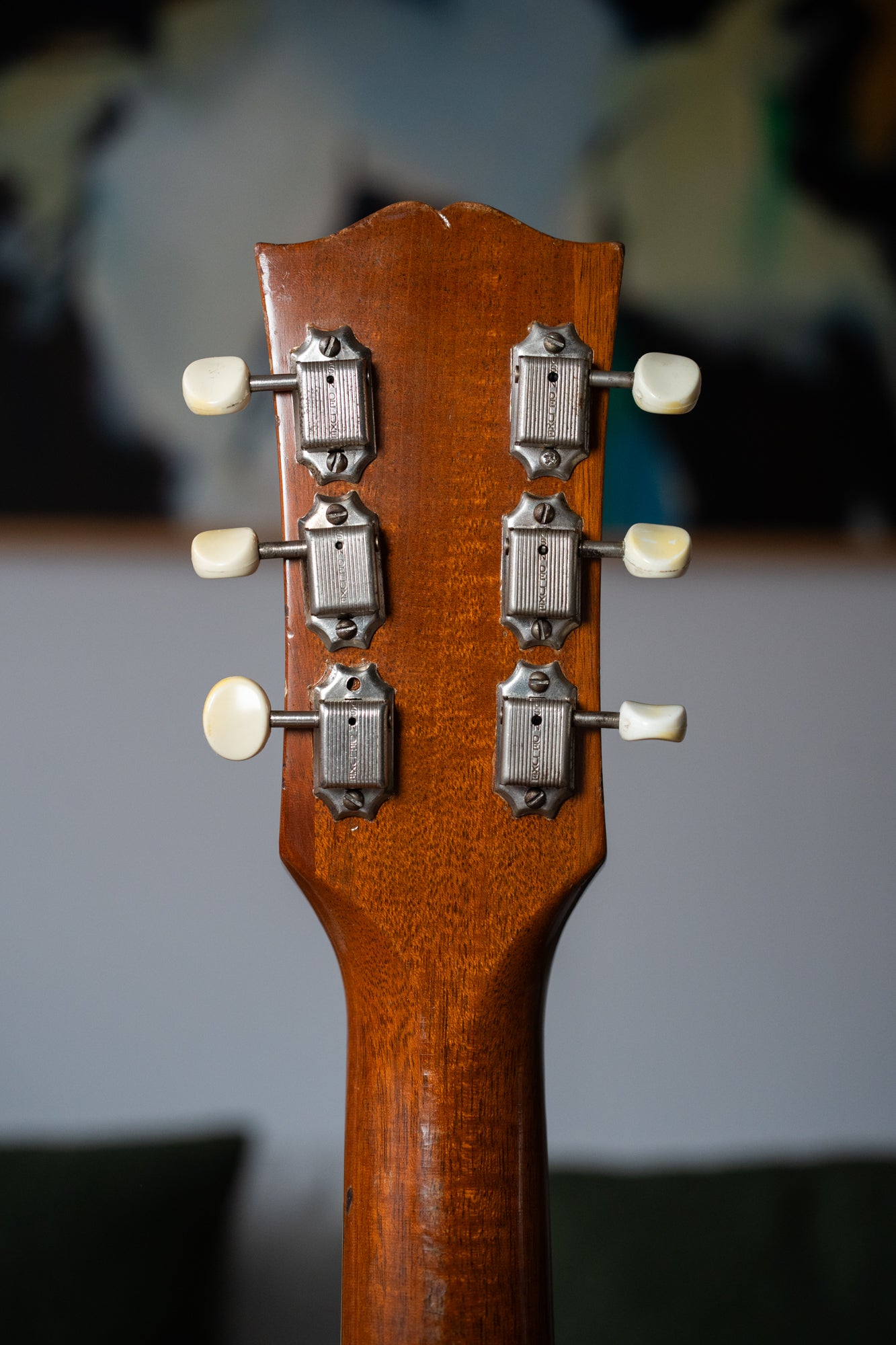 In het verleden heeft er een strapbutton aan de zijkant van de body gezeten; het schroefgaatje daarvan is netjes hersteld met een klein patch. Verder is de gitaar volledig origineel. De originele bruine Gibson-softcase zit er bij.