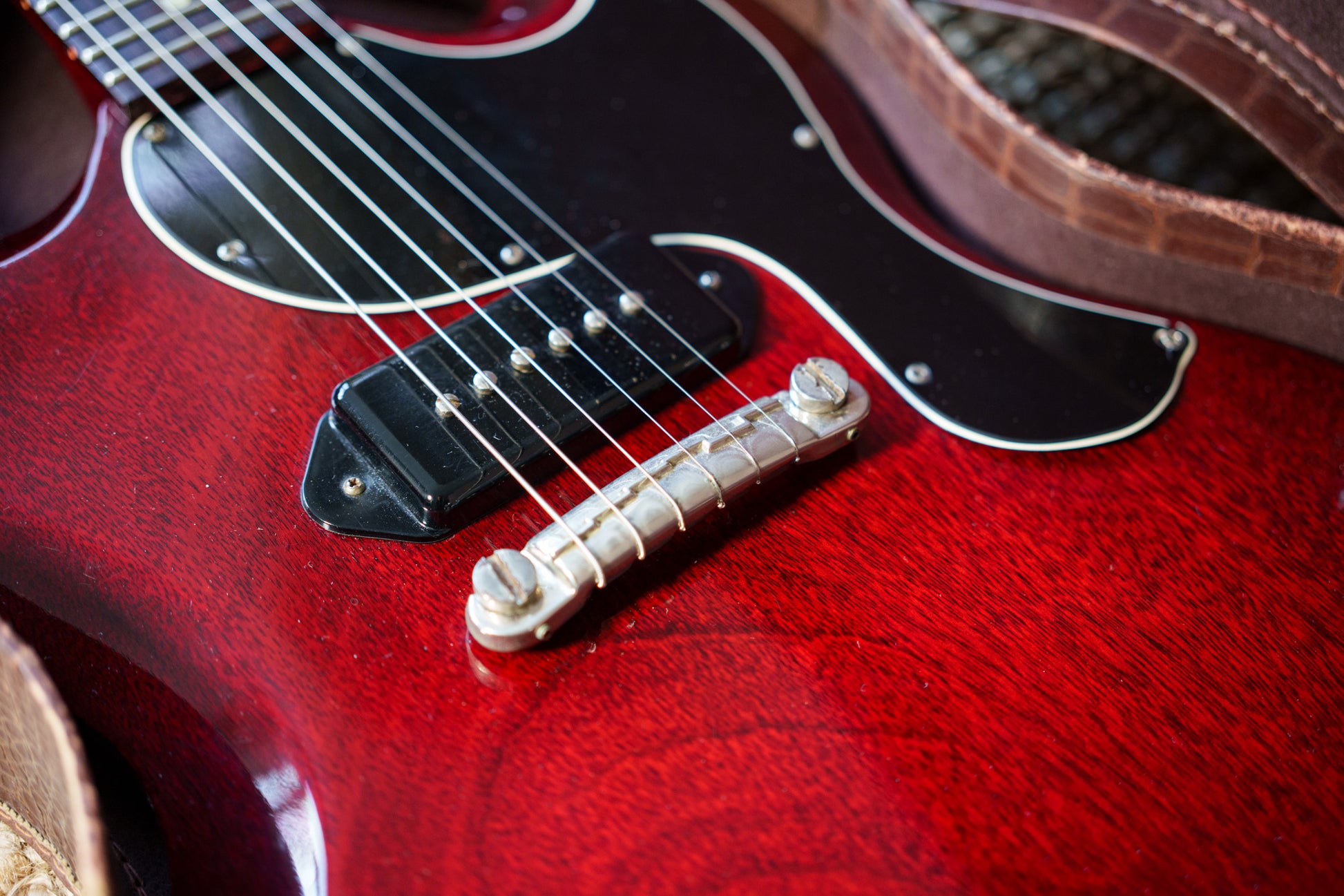 Cherry Red Gibsons from this era often fade to a brown/orange shade. However, this Junior has retained the same vibrant red color it had when it left the Gibson factory in Kalamazoo in 1963.